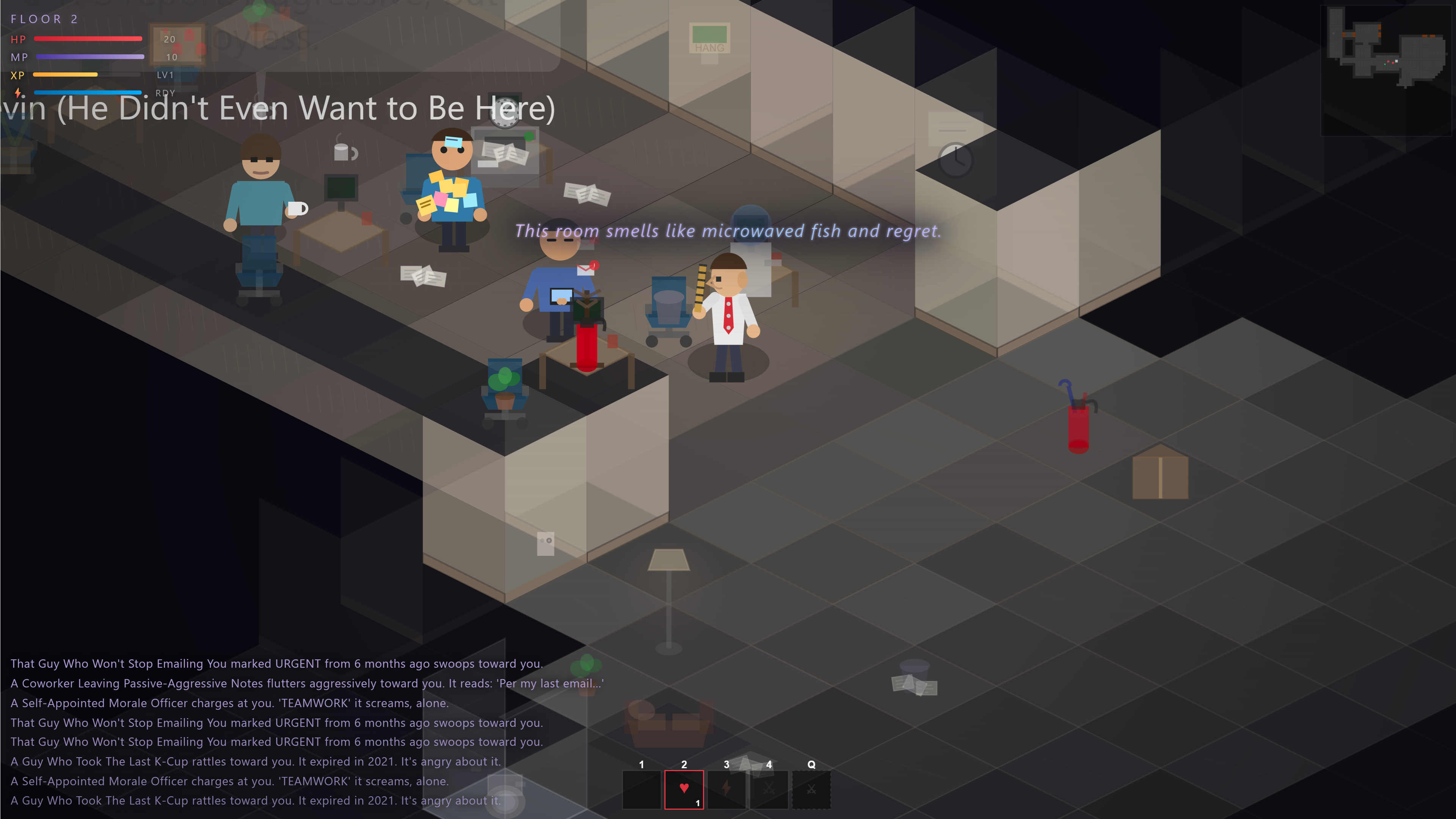 Fight your way down through coworkers, middle managers, and whatever's growing in the break room. Scavenge office supplies as weapons. Equip cubicle panels as armor. Try not to think about why the stairs only go down.